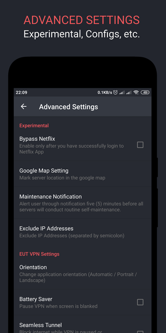 EUT VPN - يتطلب Easy Unlimited Tunneling نظام Android 9.0 وما فوق. الإصدار الحالي من البرنامج هو 1.4.2 ، ويمكنك تشغيله باللغات الإنجليزية والألمانية والروسية.